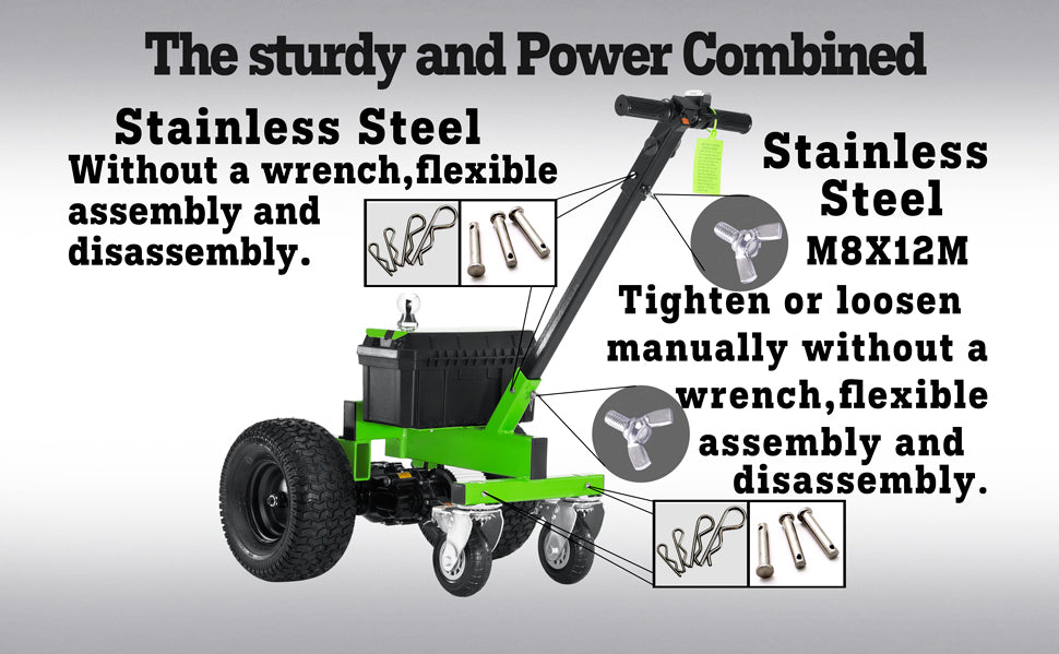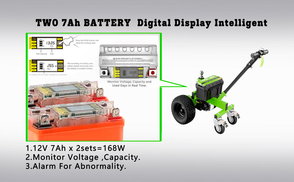 SuperWagen Electric Trailer Dolly – the perfect towing solution for RVs, boats, and trailers. Equipped with precise battery voltage and power displays, a robust high-current capacity main circuit for secure connections, dual hitch balls, braking guide wheels, and soft start technology for safety and control. Durable, reliable, and ideal for outdoor adventures or commercial use. Shop now for effortless towing!"