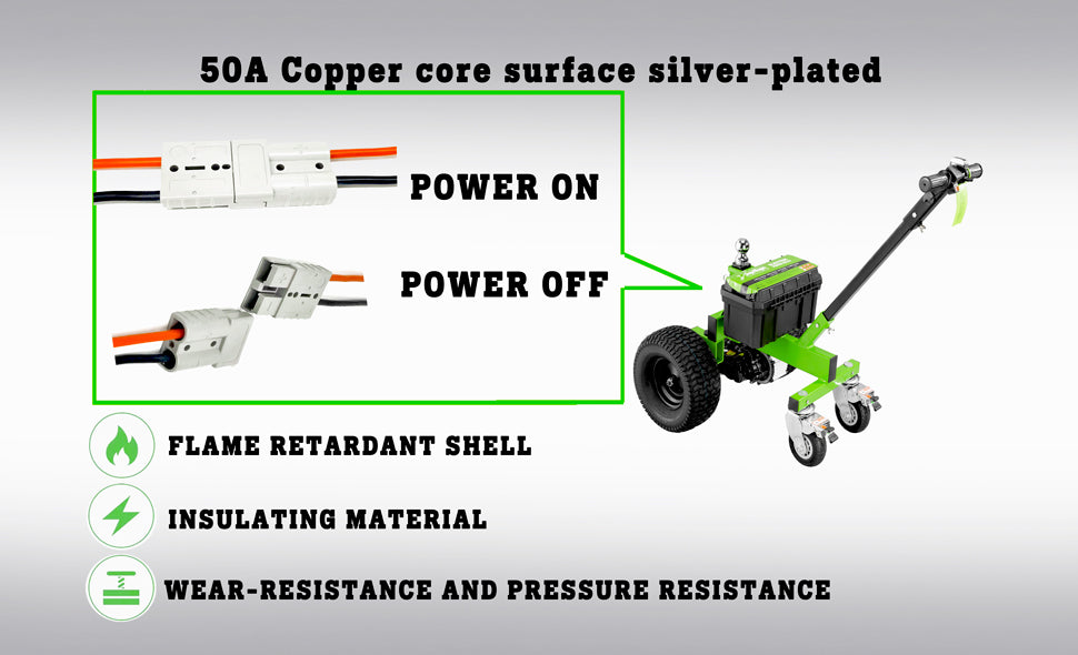 The combination of high-current capacity, heat-resistant insulation, and fine-stranded tinned copper conductors reduces thermal stress and conductor fatigue. This design helps prevent overheating and ensures consistent power delivery during prolonged electric trailer dolly operation.