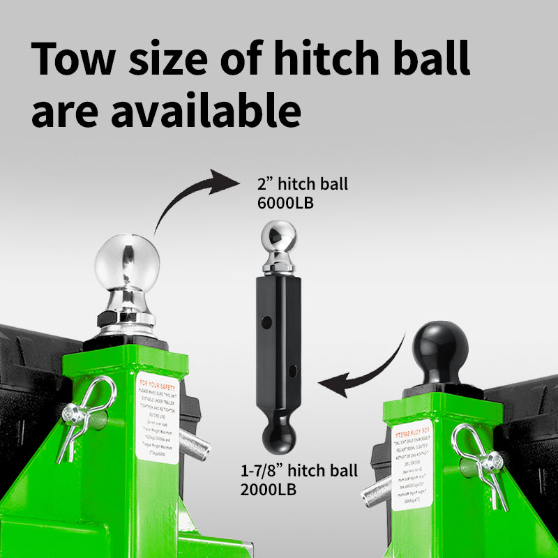 Features an double ball attachment mechanism with 2-inch and 1-7/8-inch hitch balls, allowing compatibility with a wide range of trailers. The threaded 2-inch ball mount design enables easy replacement, making this electric power dolly ideal for users managing multiple trailer types.